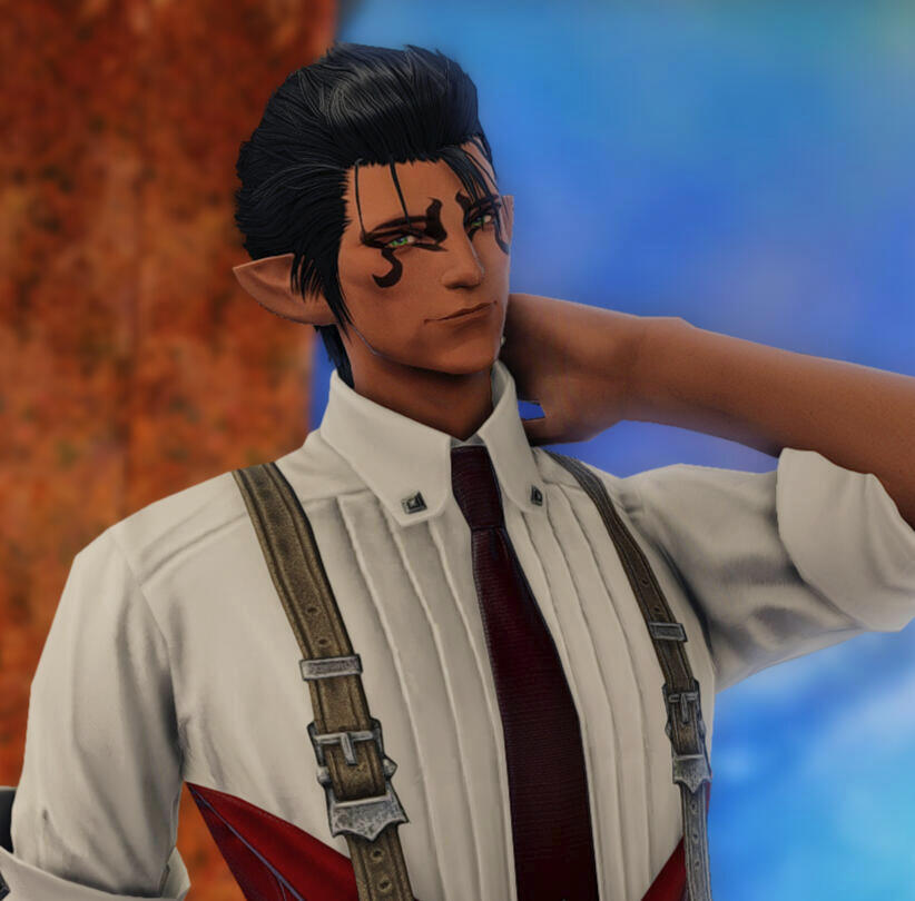 The youngest of two, Vhen was raised by his sister until his tenth summer, when he was adopted as a ward. Next to his aunt, he is the last remaining member.His childhood, however, is not one he speaks much about. Whatever the reasons may be, Vhen seems to be happy enough only focusing on, and fretting about, the present.Though he appears to wield his sword with practiced hand, his interests seem to lie in the pursuit of knowledge, be it from books or hands on experience. As such, he is eager to quiz anyone who even mildly interests him. He is not above playing twenty questions with a perfect stranger.Somewhat aimless in life, Vhen occupies himself with friends and his job at the Scrapyard.- Vhen is not a Warrior of Light. He does not have an Echo.